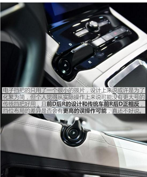 實際上,為了強調“設計感”,蔚來ES8已經偏離了其作為一輛車的初衷。從操控上來說,其電子檔把設計得過小,表面上看是“化繁為簡”,但實際用起來并沒有傳統擋把或懷擋好用,并且,最早爆出的“前D后R”的設計也令人大跌眼鏡——上市當日,某汽車網站的文章中提到,蔚來ES8“(電子擋把)前D后R的設計和傳統車前R后D正相反,擋位布局的差異是否會有更高的誤操作可能,真還不好說”,引發熱議。后來,此文章經數次刪改,將影響縮小到了“可控”范圍內。