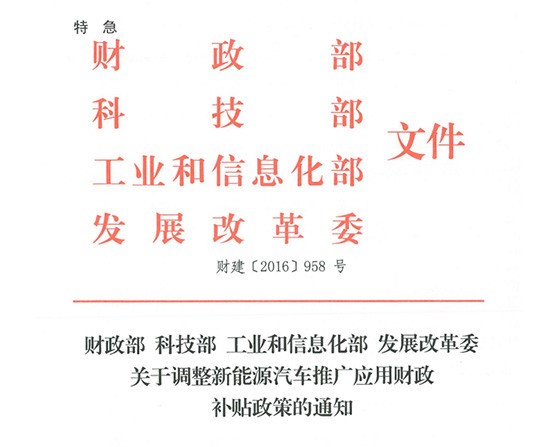 四部委發布“關于調整新能源汽車推廣應用財政補貼政策的通知”